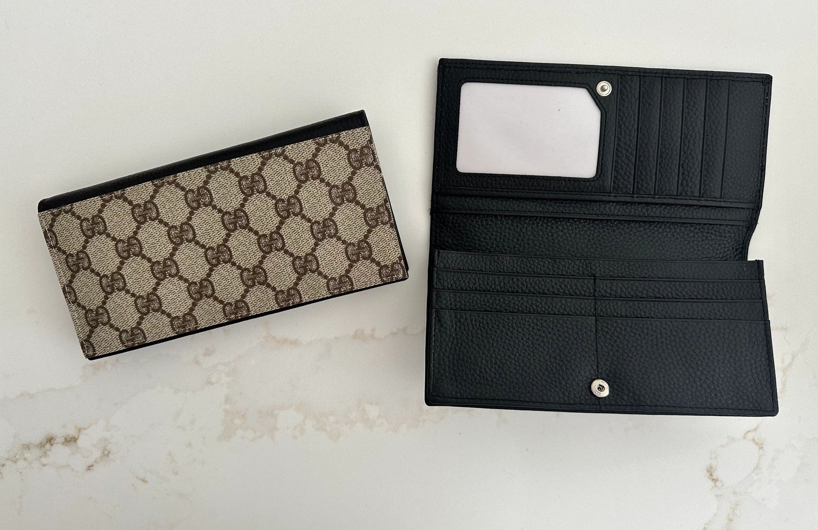 - Includes 11 credit card slots, 1 ID window, 3 currency/bill/receipt pockets, 1 interior zippered pocket for coins, 1 outside zippered pocket for change. Plenty of rooms to carry your cash, cards and receipts, id cards, driver’s licenses, etc.