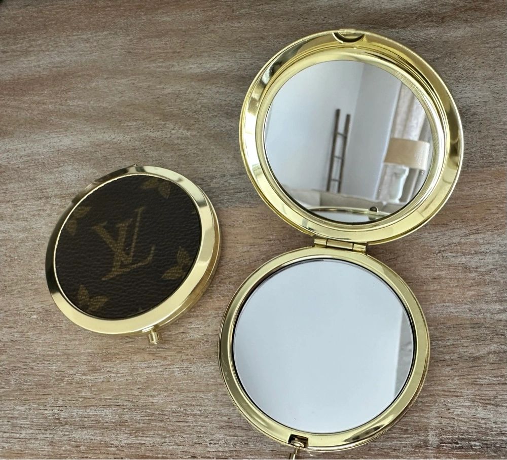 - Both sides of compact have a mirror. One mirror is normal, and the other is 5x magnification.